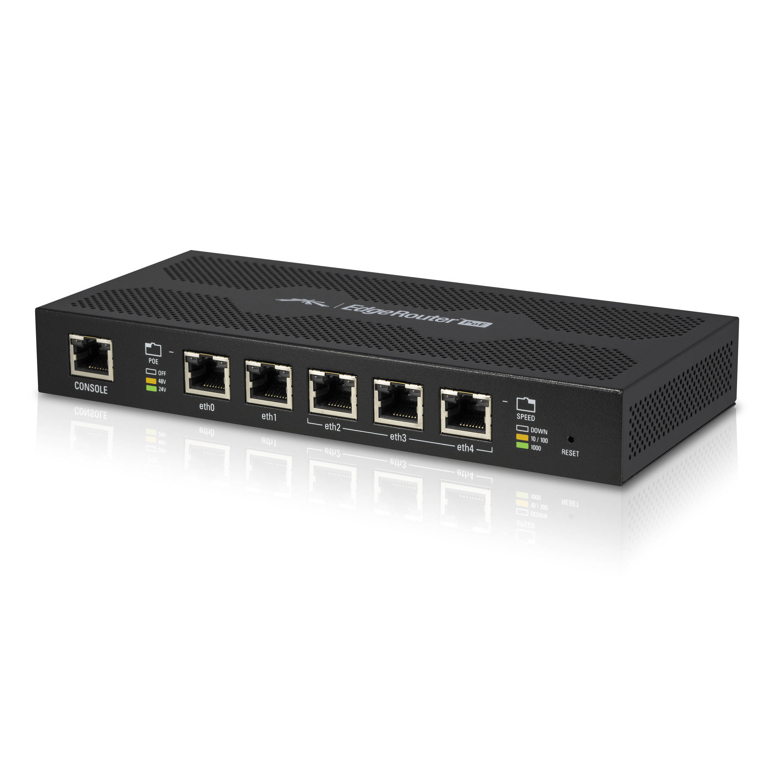 Introducing the EdgeRouter Poe-5 from Ubiquiti Networks™, part of the EdgeMAX®platform. (5) Gigabit routing ports,(5) PoE configurable ports,Supports 24V or 48V PoE,(3) Ports Configurable for Switching.