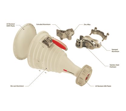 Asymmetrical Horn TP Antennas have solid aluminium body, built to last and resist any weather conditions. We use the most suitable materials: die cast, stamped and extruded aluminium; stainless steel, high quality ABS plastic and high density polyethylene.