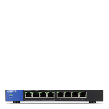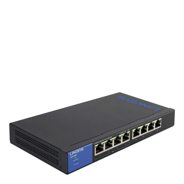 LINKSYS LGS124 24-PORT BUSINESS GIGABIT SWITCH Upgrade the data paths of your local wired network to information superhighways with 8-port desktop Gigabit PoE switches. Learn More Wired connection speed up to 1,000 Mbps 8 Gigabit Ethernet autosensing ports Power over Ethernet (PoE) support Easy plug & play connection QoS Meets EEE (Energy Efficient Ethernet) 802.3az standard