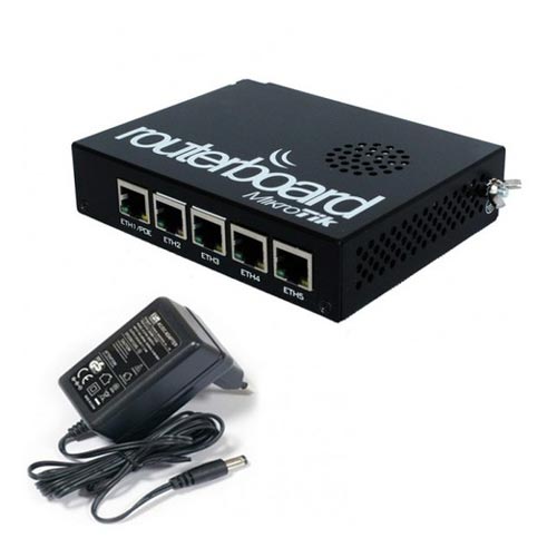 Four core 716MHz CPU, 1GB RAM, 5xGigabit Ethernet, PoE out on port #5, RouterOS L5