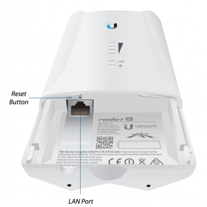 Featuring proprietary AirMAX AC technology,The R5AC-PTP radio can be paired with a RocketDish antenna (SKU: RD-5G31) to create the endpoint of a high-performance