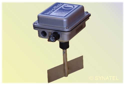 The Step-a-Matic is a patented rotary paddle level probe using a new and unique gearless & clutchless drive system. The Step-a-Matic uses a unique stepper motor drive instead of the usual synchronous motor. This utilises a direct drive eliminating the need for gearboxes & clutches, and makes the drive virtually indestructible, It also allows the motor to rotate in both direction, to avoid compaction of light material. The paddle also 'shakes at the end of it's rotation cycle to discard clinging material. Variable torque setting allows one paddle to suit virtually all applications, and paddles can be extended upto 2m in length. Torque & Rotation are monitored for fail-to-safe operation. |